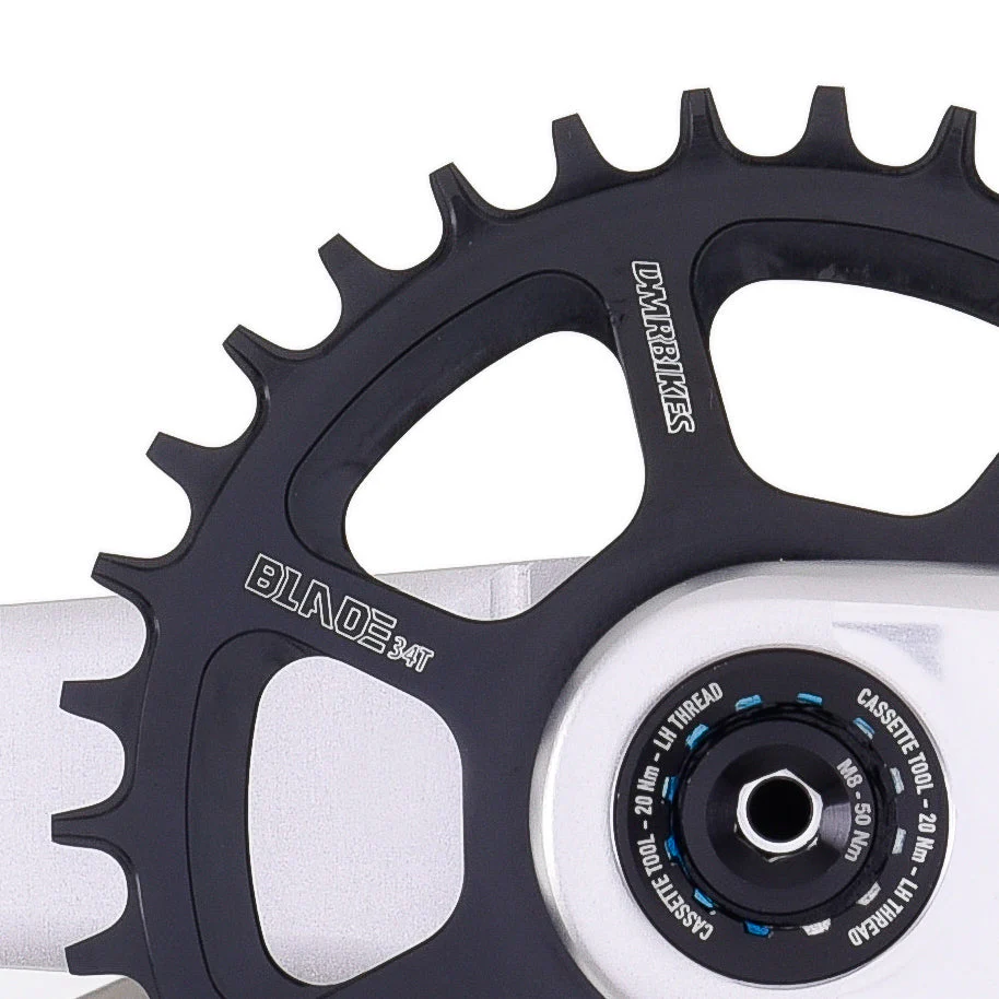 The DMR Blade is our new direct mount, one-piece chainring. It replaces your previous spider and chainring setup.
